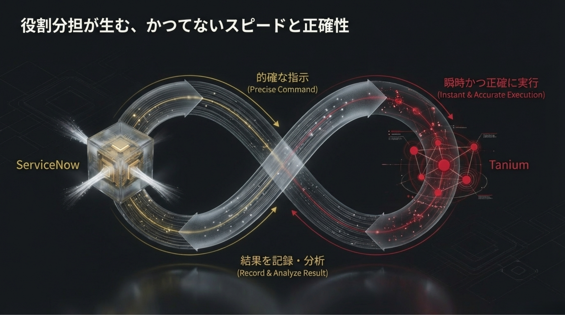 ServiceNowがIT運用の「頭脳」であるならば、TaniumはIT運用の「目と手足」として機能します。